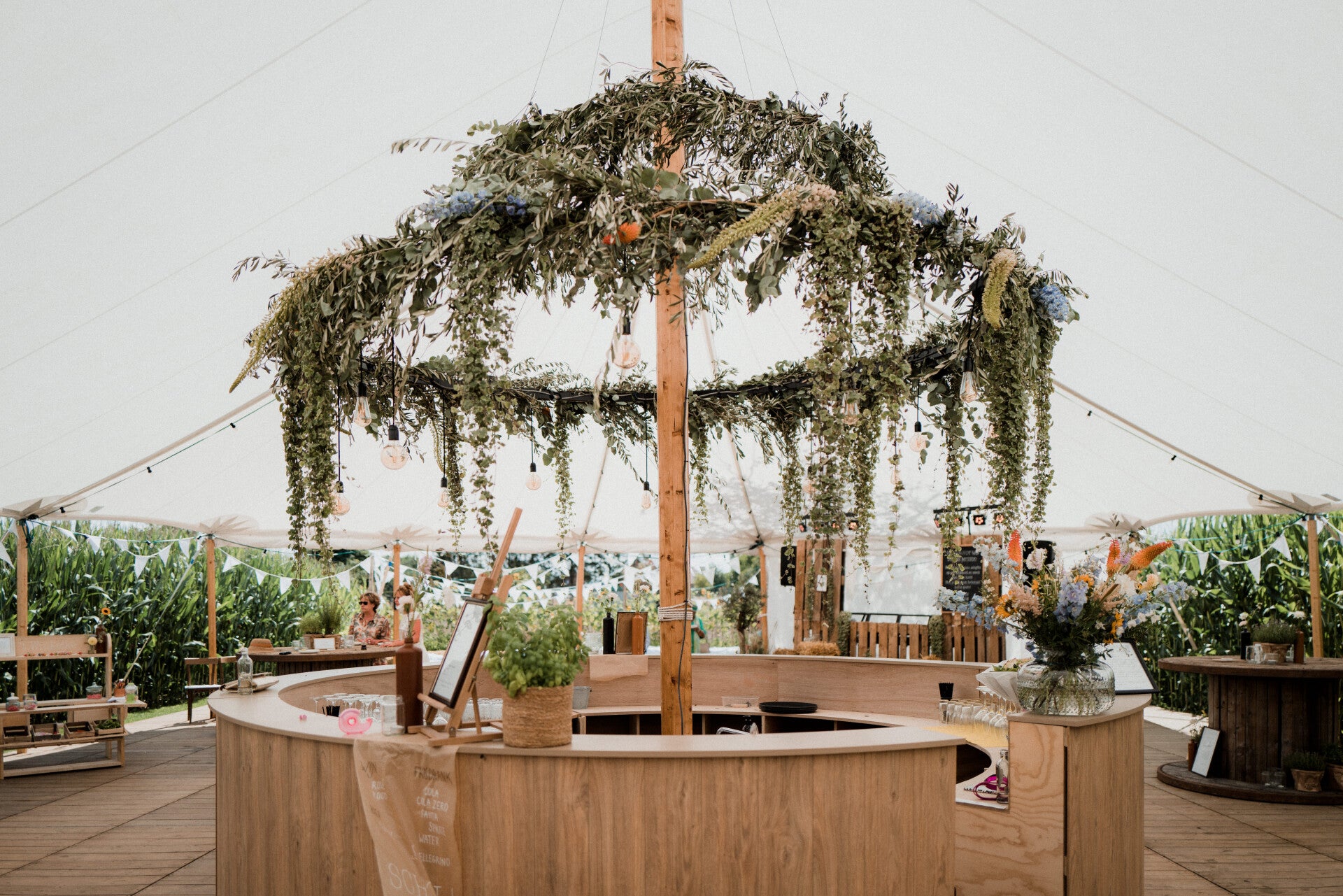 * een centerpiece is een bloemstuk of grote handgebonden bloemekee dat de aandacht trekt. Perfect bij de inkom (in combinatie met een welkombord), bij de ceremonie (op een houten zuil), op de bar, bij de DJ, ...